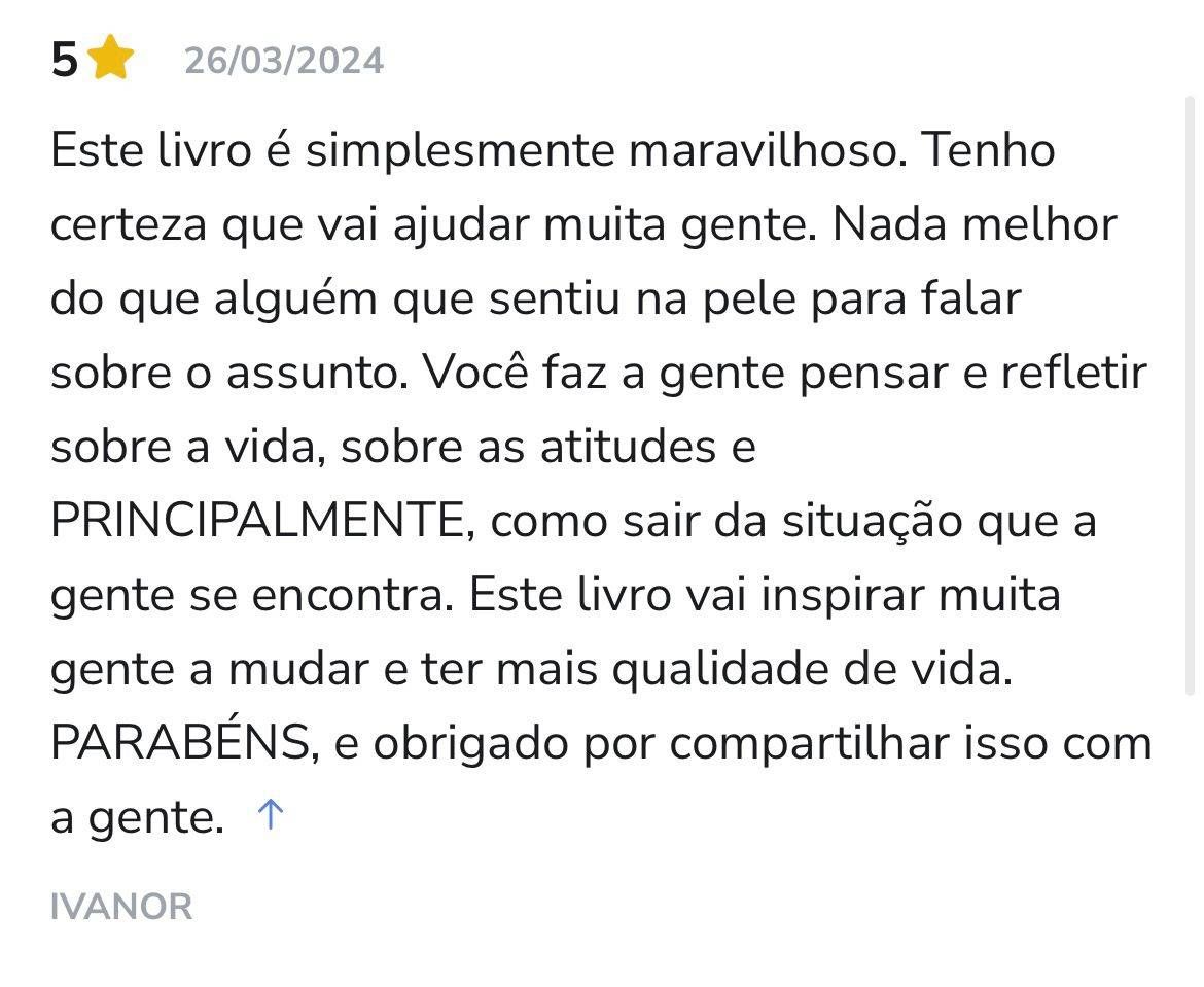 Esse produto irá te auxiliar a iniciar pequenas mudanças em sua vida e na forma de olhar para si mesmo. Composto de um passo a passo que a autora realizou para sair da situação em que se encontrava e transformar a sua vida.